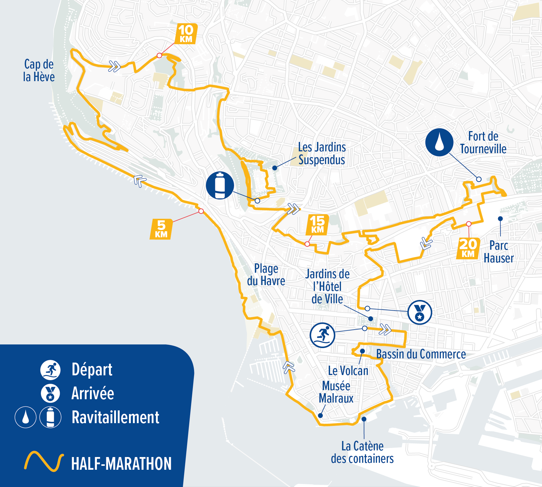 Vous passerez par le bout du monde avant de rejoindre les falaises de Sainte-Adresse (site Natura 2000) puis les jardins partagés avant de goûter à quelques escaliers afin d’atteindre les 2000 marches et 510m de D+. Un trail qui risque de vous faire chauffer les cuisses !